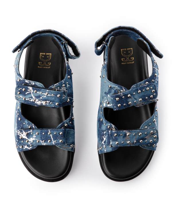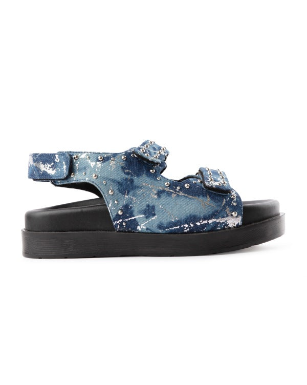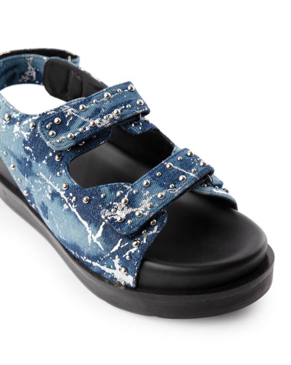 • Upper - - Highlighted by tie-dye denim base pattern with abstract metallic prints on it combined with stud details