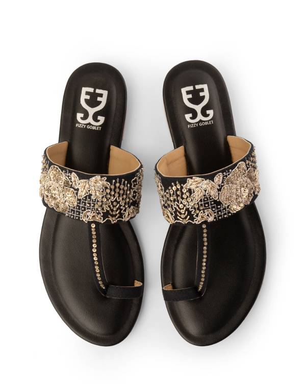 Speaking about the designs of Fancy chappals , Designer chappals and Kolhapuri chappals for ladies by Fizzy Goblet, they reflect different moodboards. For instance, we have Kolha flats that are inspired by floral and nature accents, sparkling embellishments, astrology, and celestial bodies. Some of our Designer and Fancy chappals are also made in collaboration with couturiers, Payal Singhal and Rahul Mishra. With a number of themes, our Kolhas make for fascinating wear with most of the outfits. Fizzy Goblet’s Designer Chappals can be paired both with ethnic and western wear and on a number of occasions, right from brunch outings to festivities and wedding nights. So, let’s talk about how Designer Chappals and Kolha flats can be styled.