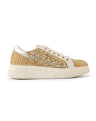 All shine, no subtlety. These sneakers go full glam in a mix of gold and silver, finished with delicate ribbon laces for a soft, statement twist. Designed to sparkle with every step, they’re where sporty meets seriously chic.