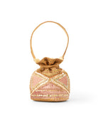 A pop of color, a touch of tradition. This multicolour potli with gold detailing is the perfect festive companion- bright, bold, and full of charm. Pair it with lehengas, sarees, or fusion wear for an effortlessly joyful look.