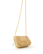 Shimmer in every detail. With its white and gold base and dazzling mirror accents, this bag is the perfect blend of subtle glam and festive sparkle. Pair it with mirror-work outfits or elegant ensembles for a look that catches every eye.