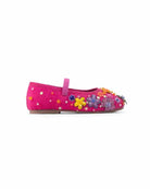 Bright, bold, and full of bloom. This kids ballerina comes alive in a vibrant pink base, adorned with colorful 3D floral details for a fun, eye-catching finish. Perfect for little feet that love to stand out and spin in style.